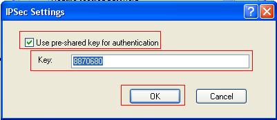 pre-shared key for authentication را فعال کرده و عدد 8870680
