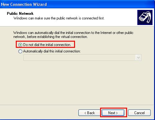 initial connection را انتخاب کرده و بروی Next کلیک کنید.