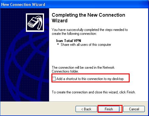 9- در نهایت برروی Finish کلیک کنید تا پنجره ی کانکشن ایجاد